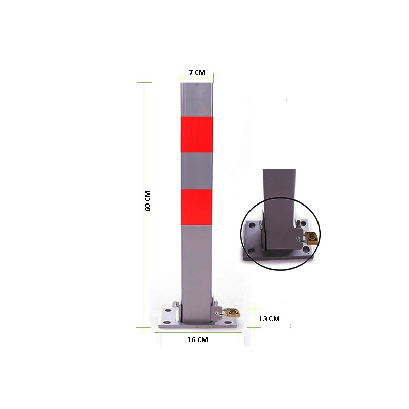 Bloqueador de EstacionamientoModelo BV60-2Procedencia NacionalCaracterísticas TécnicasFabricado en Perfil Cuadrado de 7 cm x 7 cm x 3 mmResistencia a la carga 2000 kg.Altura de bloqueo 60 cmAncho de bloqueo 7 cmPlaca Base de 16 cm x 13 cm x 5 mmPorta Candado4 pernos de anclaje 1/2" x 4"Peso 5.5 kg. Solo ventas por 10 UnidadesUsoEl bloqueador de estacionamientode posición retráctil permitemantener reservado su espacio en su ausencia, evitando así serocupado por otros vehículos. De funcionamiento fácil, se baja ysube en forma manual y se dejabloqueado con candado.