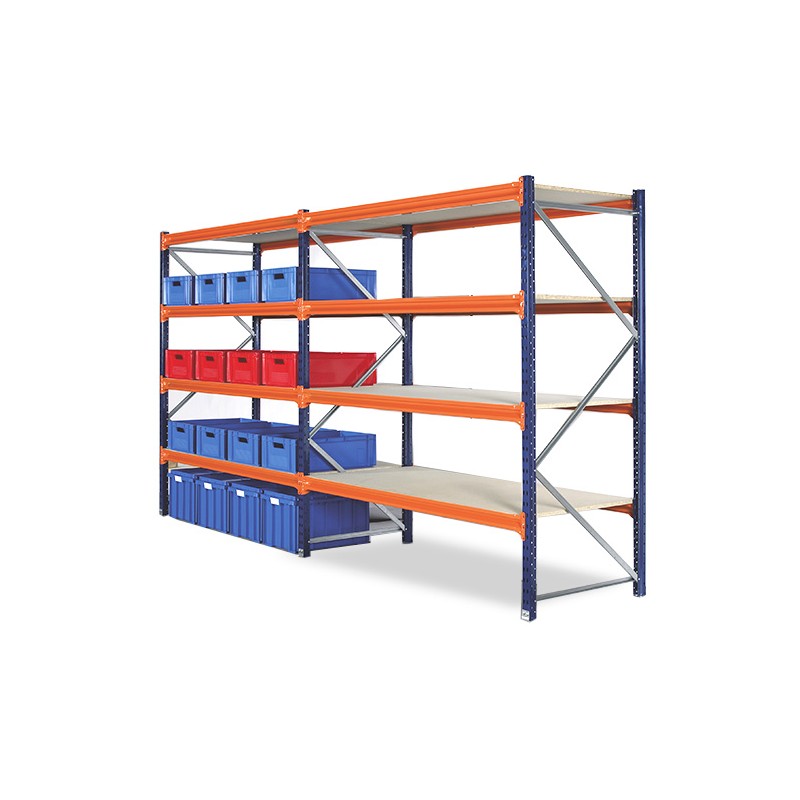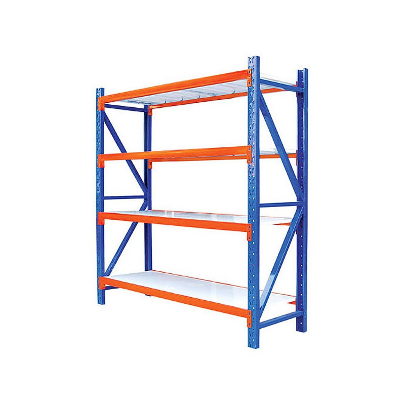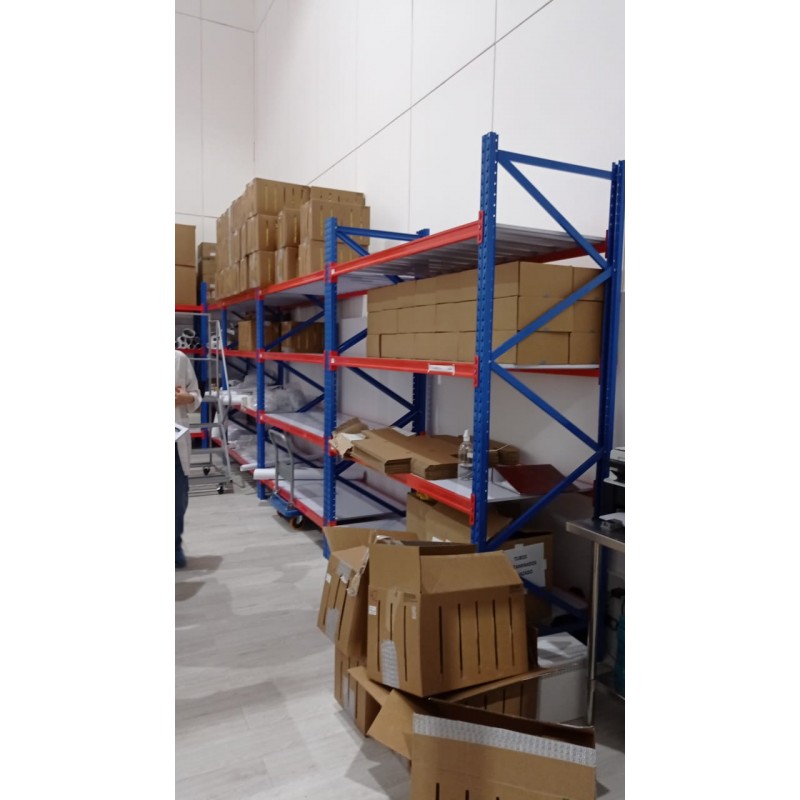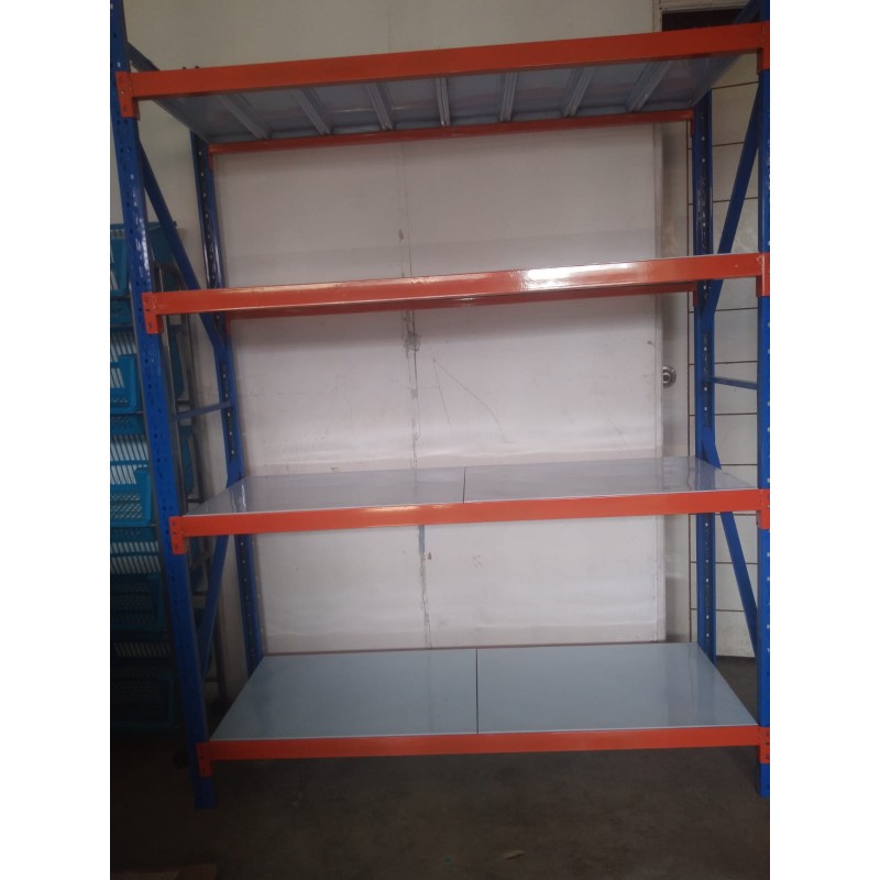 Rack Tipo Mecano MetalicoModelo RM-8004 NivelesCapacidad de Carga por Nivel 800 kgs.Capacidad de Carga Total 3.200 Kgs.Alto 200 cmLargo 240 cmFondo 80 cmsCarasteristicas Tecnicas1 Modulo de estantería metálica tipo mecano con 4 niveles de bandejasMaterial: Acero calidad comercial SAE 1010Borde anticorte (doble plegado) Incluye:4 Angulos ranurados de 200 cm en 2.0mm de espesor8 Bandejas MetalicasEscuadras atiezadoras galvanizadasPernos hexagonal zincados de 5/16 x 3/4Pilares en terminación electroestática color Azul.UsoEste sistema es utilizado para el almacenaje de cargas medianas y pequeñas. Su diseño es similar al del rack selectivo, formado por bastidores estructurales y vigas de carga. Su principal característica es que está concebido para recibir cargas de forma manual o picking, ya que posee una cubierta de apoyo en materiales como madera, bandejines metálicos, malla galvanizadas de distintas tramas, etc. El tipo de cubierta se define de acuerdo al tipo de carga que recibirá o al requerimiento del cliente.Este producto es principalmente utilizado por empresas como Supermercados Multitiendas. Edificios públicos y privados, Instituciones educacionales, Centros comercial, Hoteles, Automotoras, Garajes.